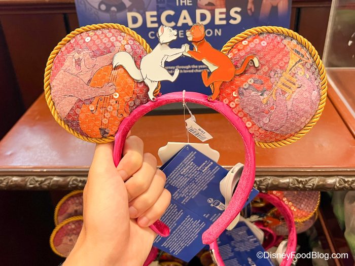 This Aristocats Ear headband features sequin-covered images of Scat Cat and Billy Boss on the front.