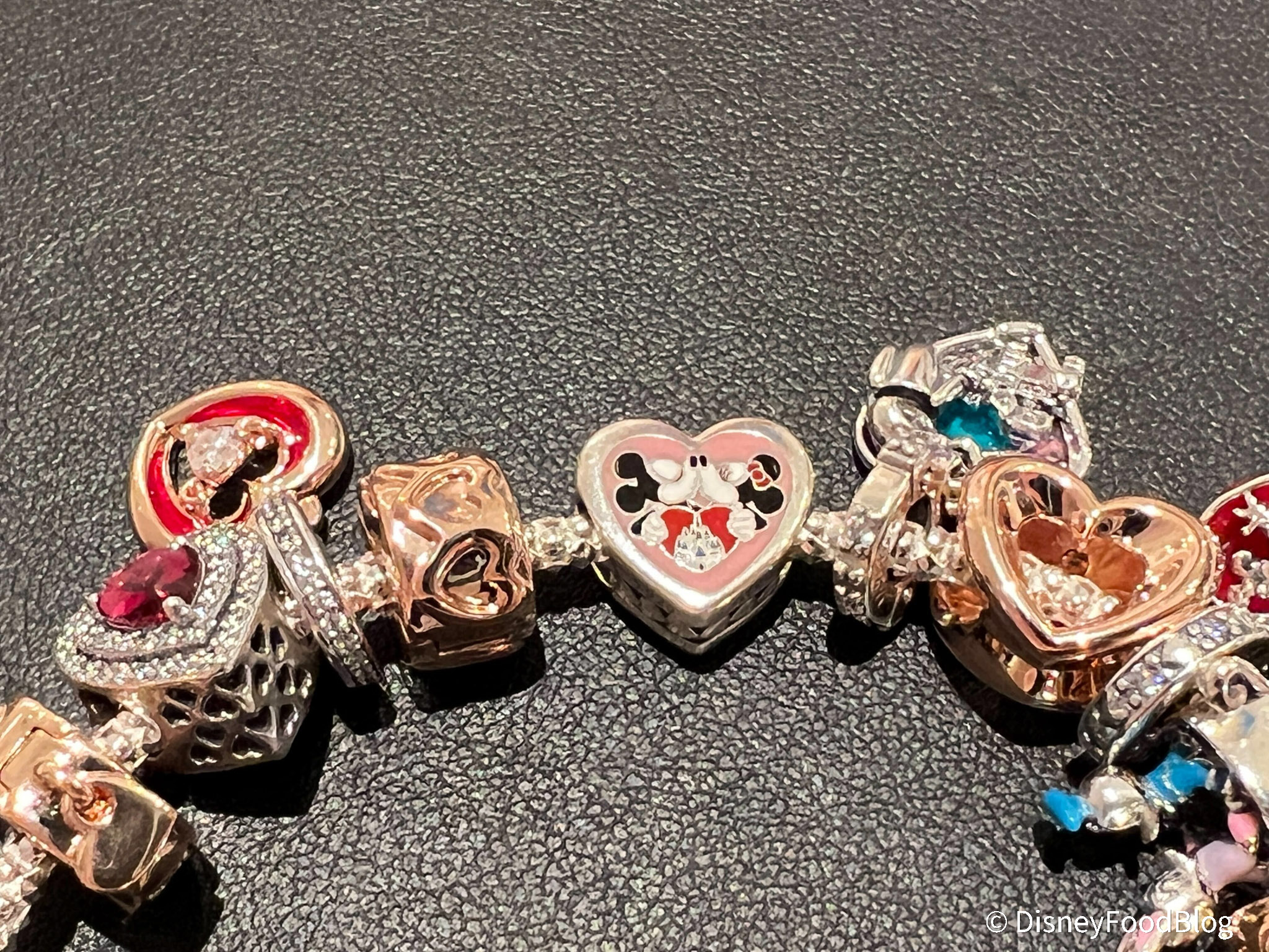 Valentine’s Day has arrived at Uptown Jewelers! We spotted a new collection from Pandora with the sweetest charms. First, we have this Mickey & Minnie Mouse Kiss Red Murano Glass Dangle Charm for $85.