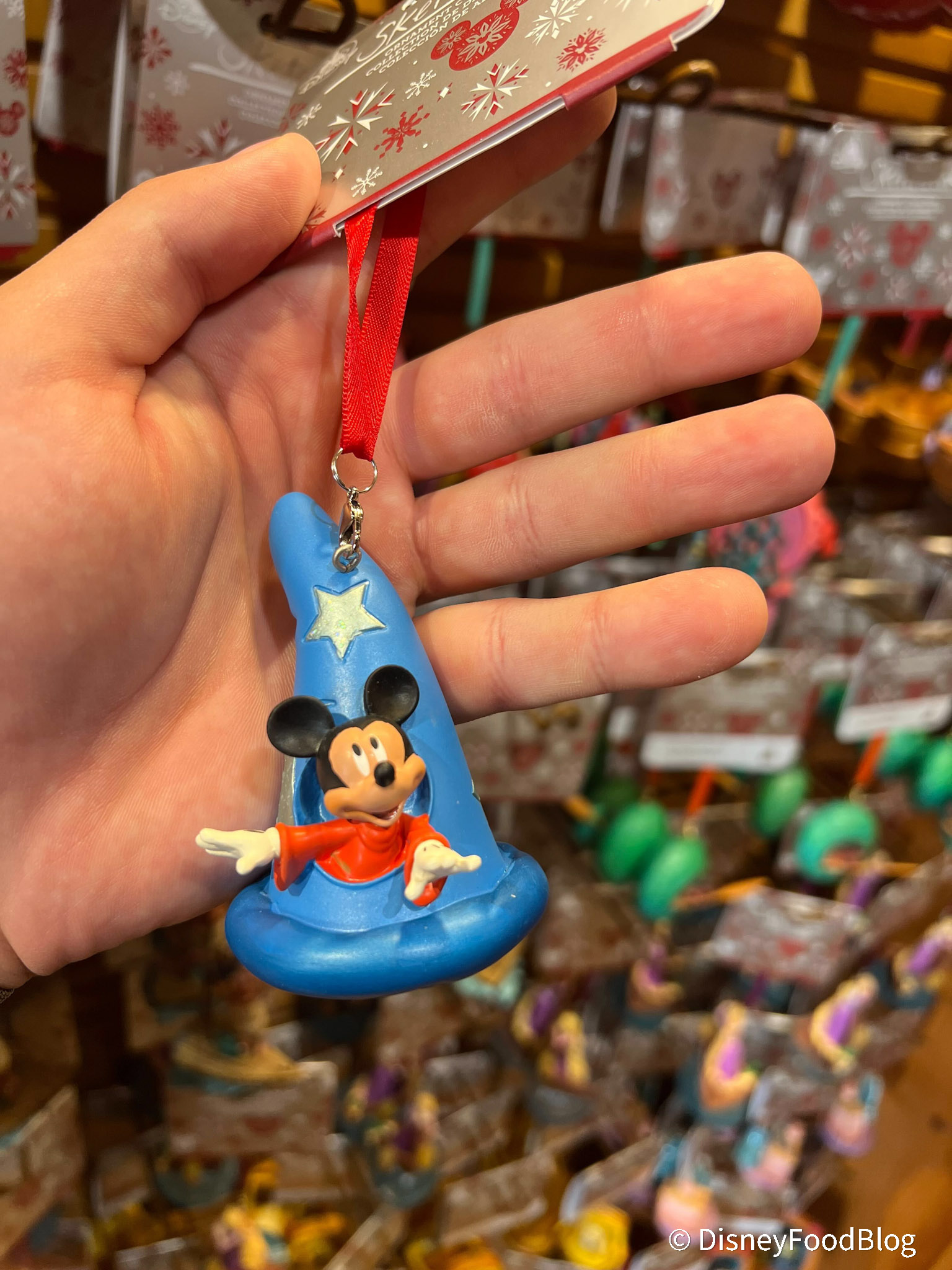 In the store where it’s Christmas all year round, we noticed a few more ornaments for sale! Fans of Fantasia will appreciate the Mickey Sorcerer Hat Ornament, available for $24.99.