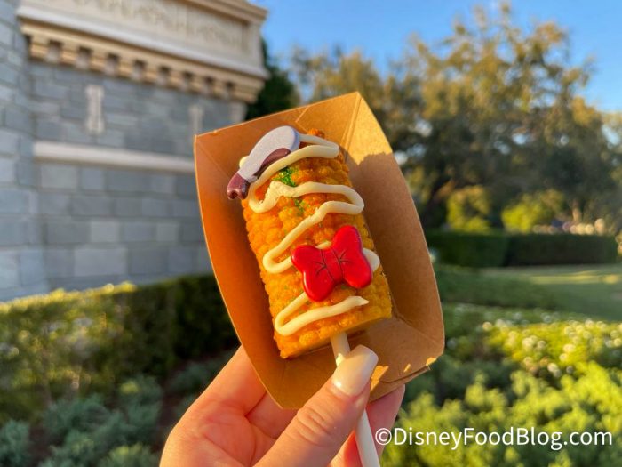If you loved the Corn Cake from Mickey’s Not-So-Scary Halloween Party, you’ll love this treat. The Donald Corn Cake is $6.25 and you can grab it at the outdoor snack carts near Cinderella Castle. Don’t be fooled — it looks just like corn on the cob, but it’s actually dessert!