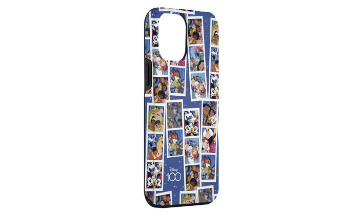 This blue case features the Disney100 logo and film-strip-style images of favorite Disney characters. SO cute!