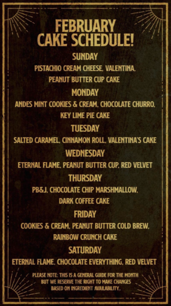 Here’s a look at the full schedule of which cakes Gideon’s will have on each day in February.