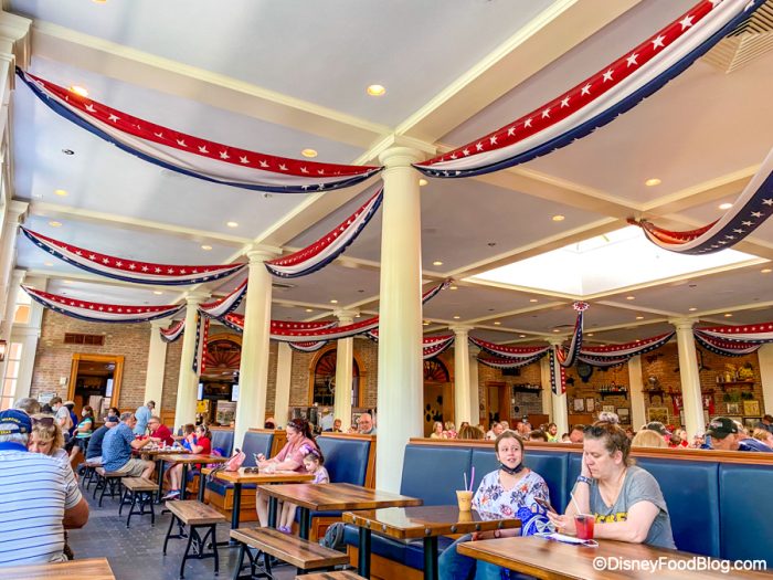 Regal Eagle Smokehouse in the American Adventure pavilion has a variety of barbecue dishes, like Kansas City Smoked Half Chicken, Memphis Dry-rub Pork Ribs, and Sliced Texas Beef Brisket Sandwiches.