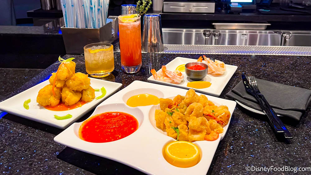 Steakhouse 71 Lounge is the less expensive bar option next to Steakhouse 71 at Disney’s Contemporary Resort. So if you don’t feel like paying Steakhouse 71 prices, you can get some similar bites in the lounge! We might even prefer the lounge, thanks to the Loaded Macaroni & Cheese you can get here.