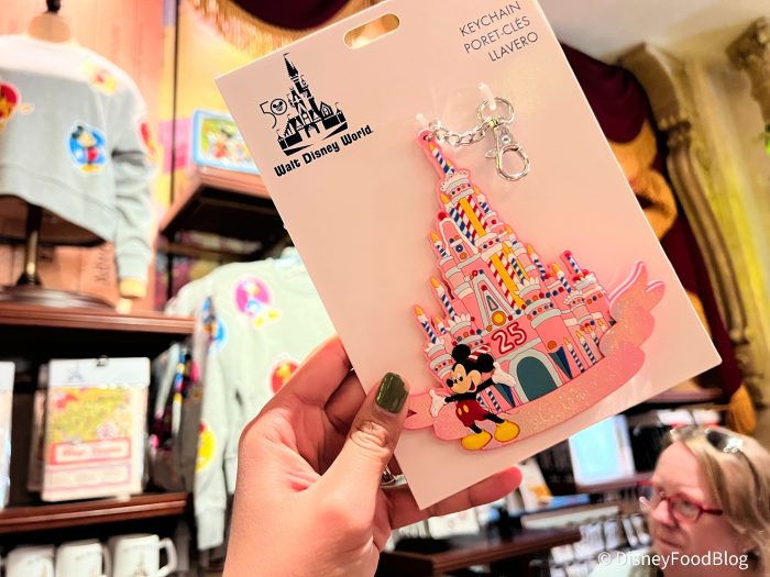 So what on earth is 25th Anniversary merchandise doing in Disney World right now? Well, look closely at the keychain below. Notice anything? There’s a 50th Anniversary design on the top left of the item! That’s right — they’re stacking anniversaries within anniversaries, like an anniversary inception!