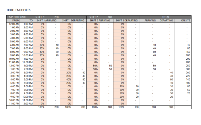 The report also discusses traffic patterns and when guests/staff would be expected to enter and depart the location. There are also depictions included of how visitors and staff would enter the parking areas.