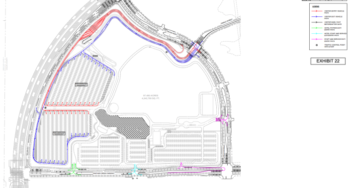 The second map shows the portion that would be main for the theme park and proposed hotel area, as well as spots for parking lots and where guests/staff would exit.