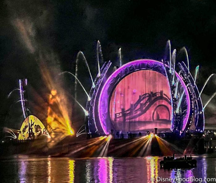 During the Walt Disney World 50th Anniversary celebrations we welcomed in Harmonious in EPCOT. This show features impressive floating set pieces that live within World Showcase Lagoon, including custom-built LED panels, choreographed moving fountains, lights and lasers, and pyrotechnics! Harmonious also uses massive 25-foot tall LED screens and 54-foot long moving arms. All of these pieces come together to create epic lighting displays that pair with classic Disney songs (in over a dozen different languages, no less).