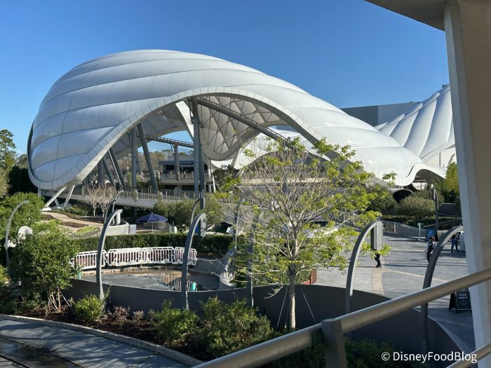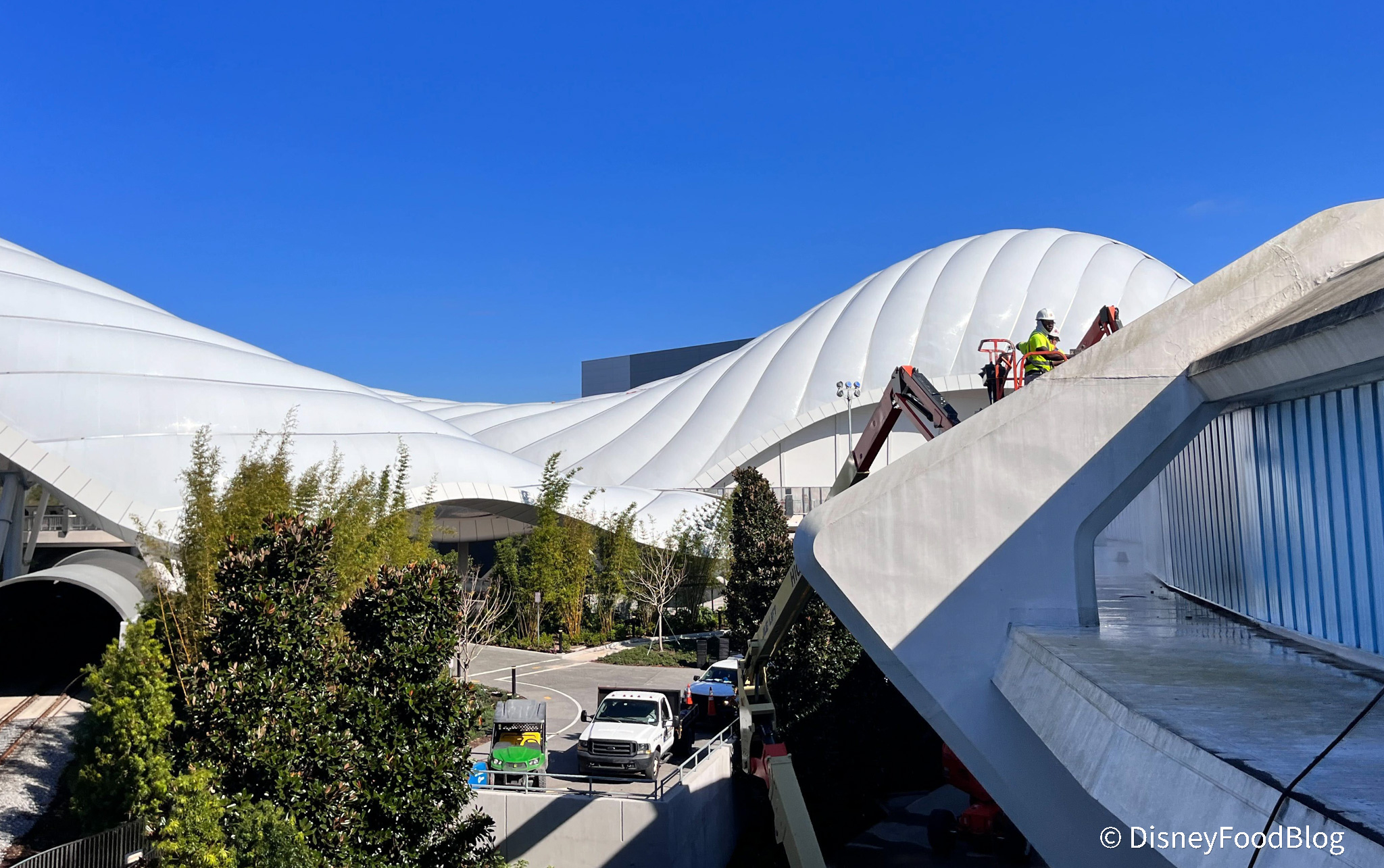 …and discovered a big crane! Disney Cast Members are likely working on some construction or cleaning over here. One Cast Member told us that they have been hard at work cleaning off Space Mountain recently due to dust that’s kicked up by the construction on TRON.