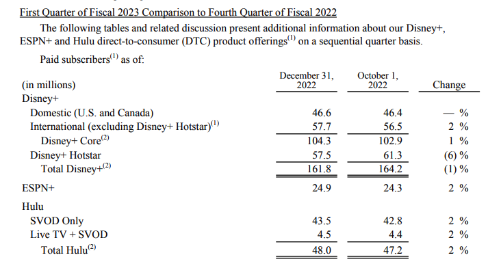 No, that’s not a typo, total Disney+ subscriber numbers actually DECREASED by December 31st, 2022 compared to just a few months before (October 1st, 2022).