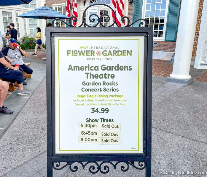 While seeing the concerts is FREE with your EPCOT admission, popular concerts can fill up. If you want to guarantee a great spot for your favorite band, then a Garden Rocks Dining Package may be the way to go!