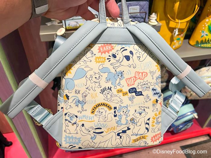 We also found the Disney Critters Loungefly Mini Backpack in Disney World, which is covered with some of our favorite Disney animals! We spot the Aristocats, Pluto, Meeko, Little Brother, Hei Hei, and more!