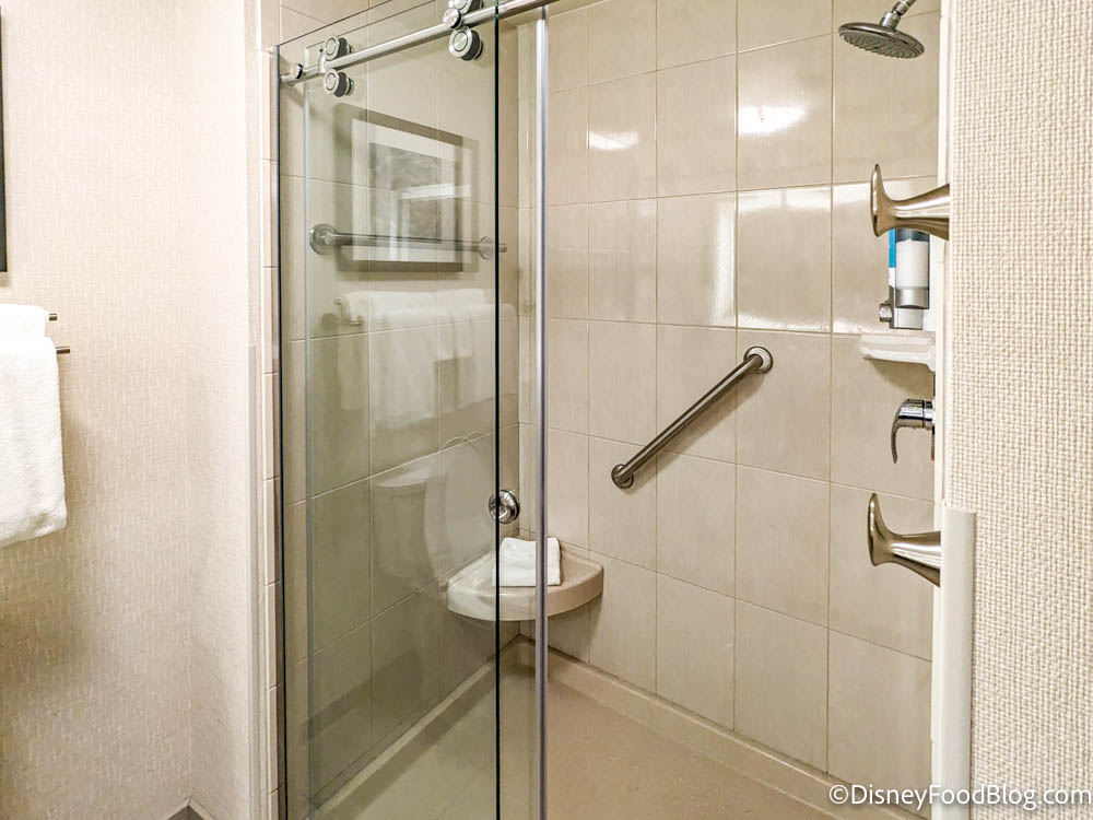 2023-wdw-disney springs hotel-drury plaza hotel-room tour-bathroom-shower By Sara McOmber Leave a Comment