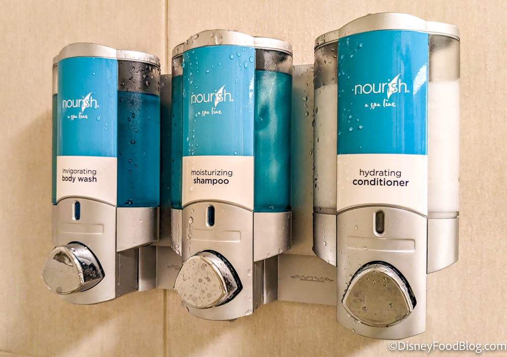 2023-wdw-disney springs hotel-drury plaza hotel-room tour-bathroom-shower-shampoo By Sara McOmber Leave a Comment
