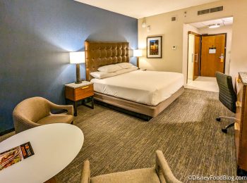 2023-wdw-disney springs hotel-drury plaza hotel-room tour-bed-dresser-seating By Sara McOmber Leave a Comment