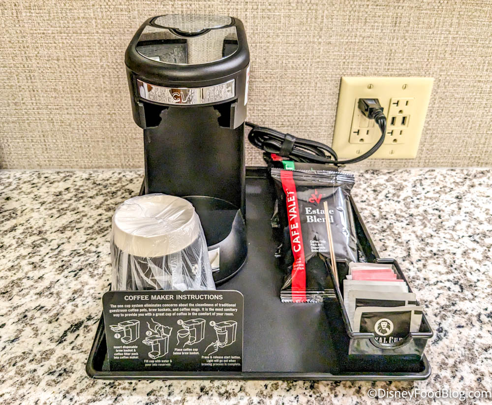 2023-wdw-disney springs hotel-drury plaza hotel-room tour-coffee maker By Sara McOmber Leave a Comment