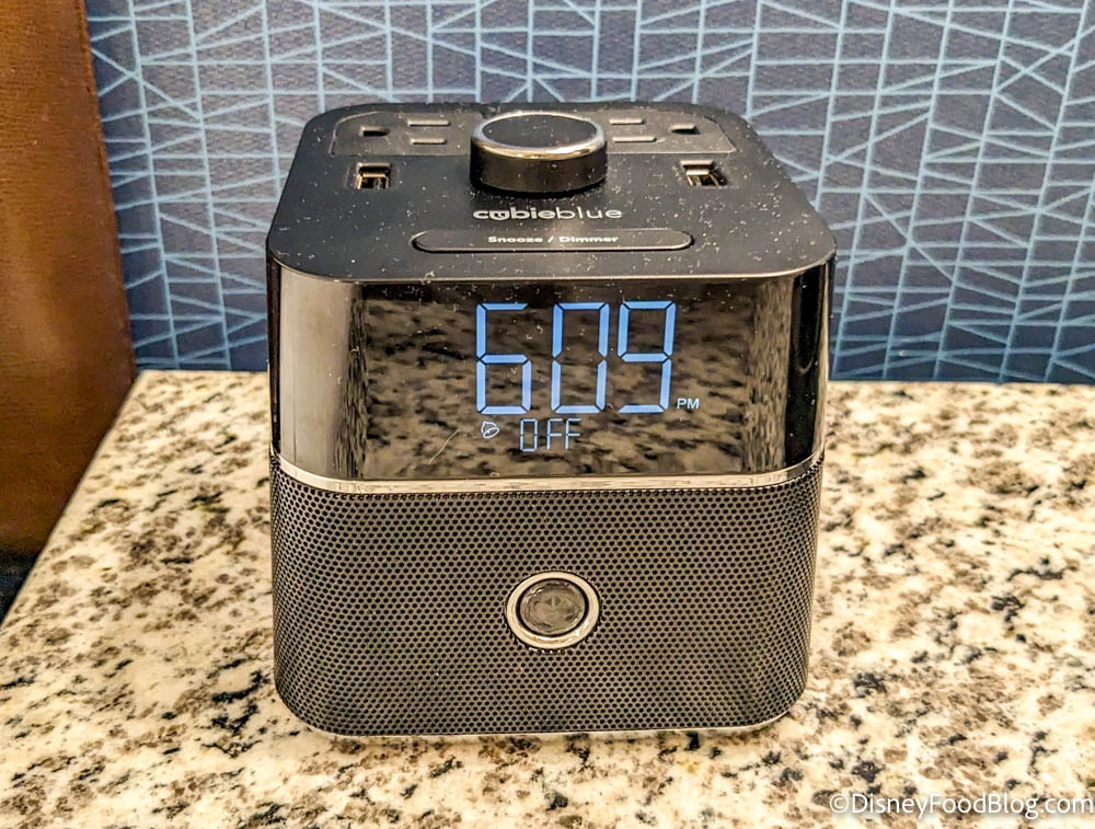 2023-wdw-disney springs hotel-drury plaza hotel-room tour-nightstand-alarm clock By Sara McOmber Leave a Comment