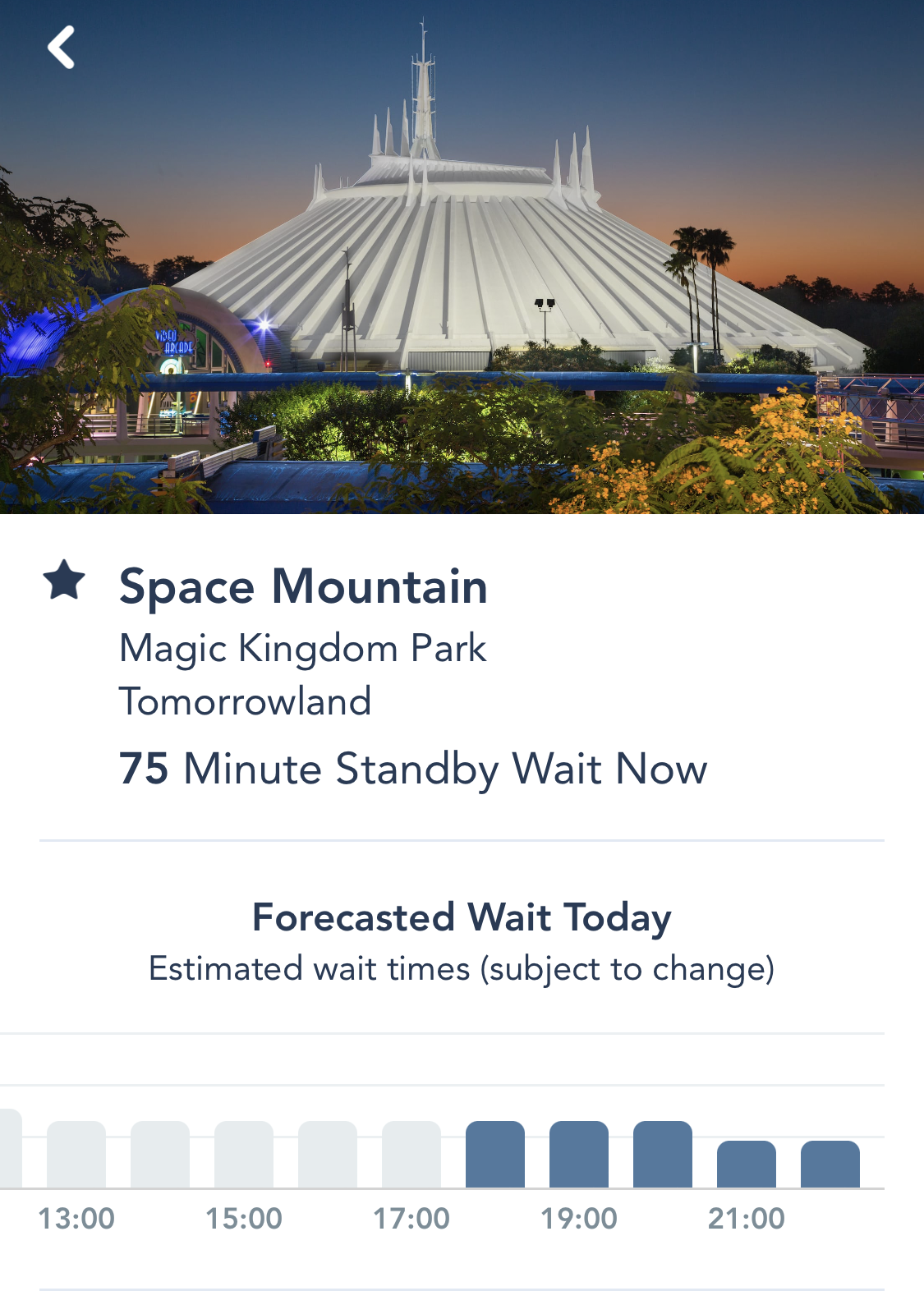 Again, these aren’t exact calculations. But they could give you a sense of when or whether a ride’s wait times will drop later in the day. And if the app is only showing that wait times will get WORSE as the day goes on, then you may want to consider hopping in line now!