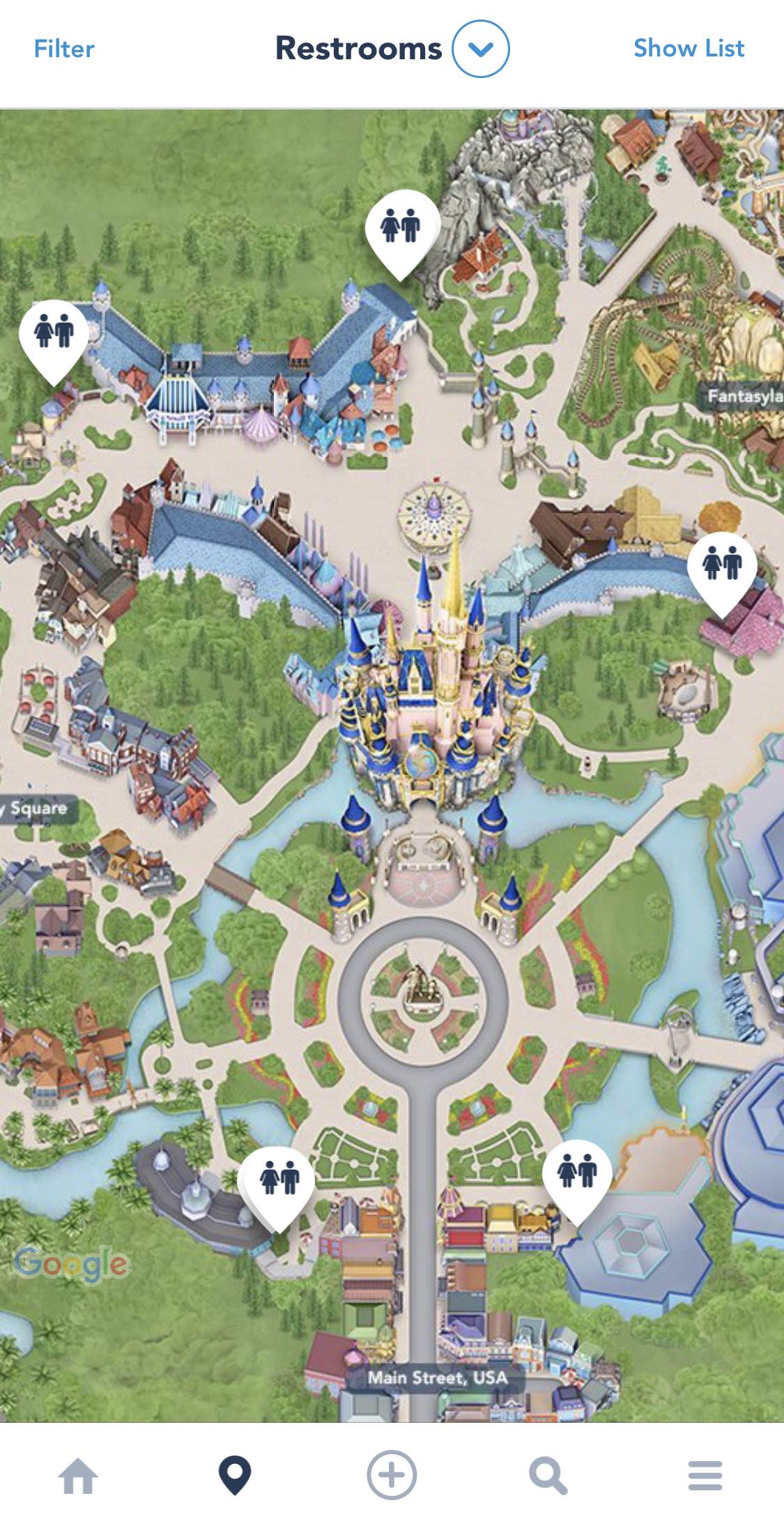 Did you know you can filter the park maps by characters, PhotoPass, or even RESTROOMS?! That’s right, no more running around when you’ve got to go. Simply go to the map (it’s the second icon on the bottom row), tap that center down arrow and a select category option will pop up, then select restrooms and you’ll know just where to go!