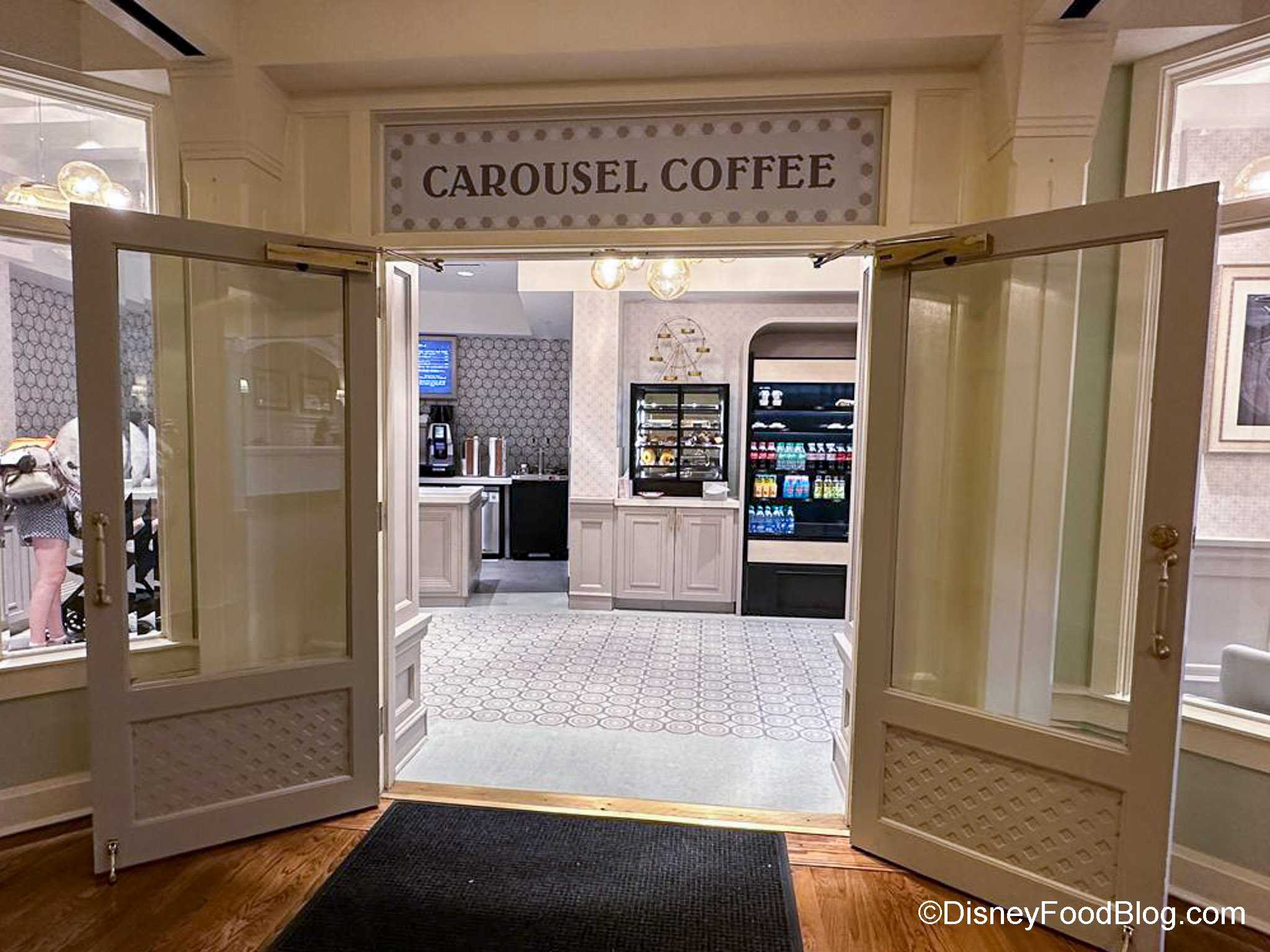Carousel Coffee opened in December 2022 at Disney’s BoardWalk. You’ll find it just inside the lobby, which makes it convenient to pick up coffee and a pastry on your way out to the parks!