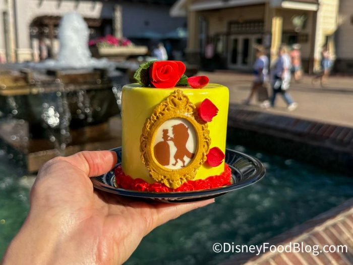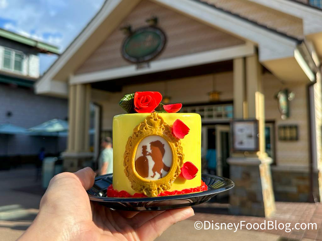 We’ve been trying all the Valentine’s Day and Celebrate Soulfully treats around Disney Springs this month, but there’s another treat we knew we had to grab from Amorette’s — a new Beauty and the Beast cake!