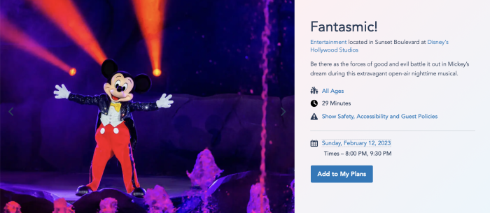 So keep that in mind if you’re visiting Disney World through those dates. We do recommend lining up for the show as early as possible as it is one of the most popular shows in Disney World. Or you could treat yourself to a Fantasmic! dining package to get a guaranteed seat for one of the shows.