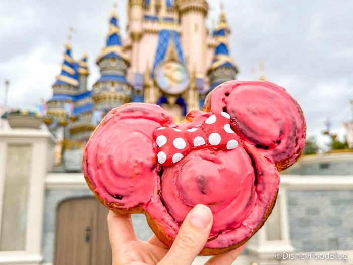 Right now, you can grab the Minnie-Shaped Pink Cinnamon Roll from the Main Street Bakery for $6.79!
