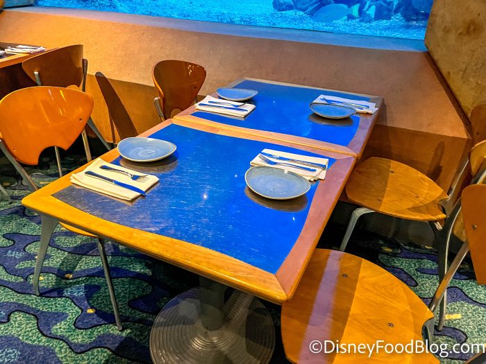 At Coral Reef Restaurant, you’re dining inside The Seas Pavilion, and one of the walls of the main dining room is made up of a MASSIVE tank filled will all kinds of sea creatures. It’s definitely a unique view!