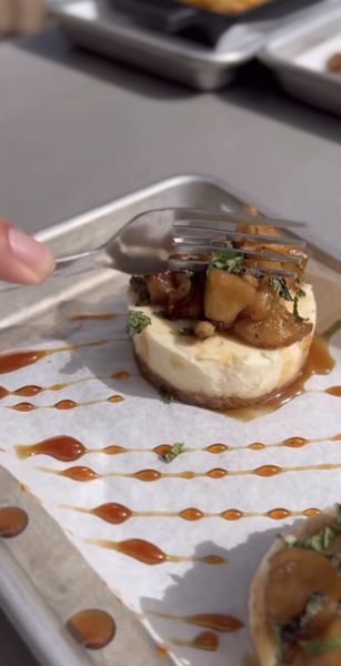 The new dessert is a Spiced Apple Cheesecake with Walnuts! According to The Polite Pig, the cheesecakes have roasted Fiji apples and walnuts and are topped with a spiced bourbon cider syrup.