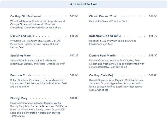 Before we dive into our meal, let’s take a look at the menu! Carthay Circle Lounge serves up both lunch and dinner.