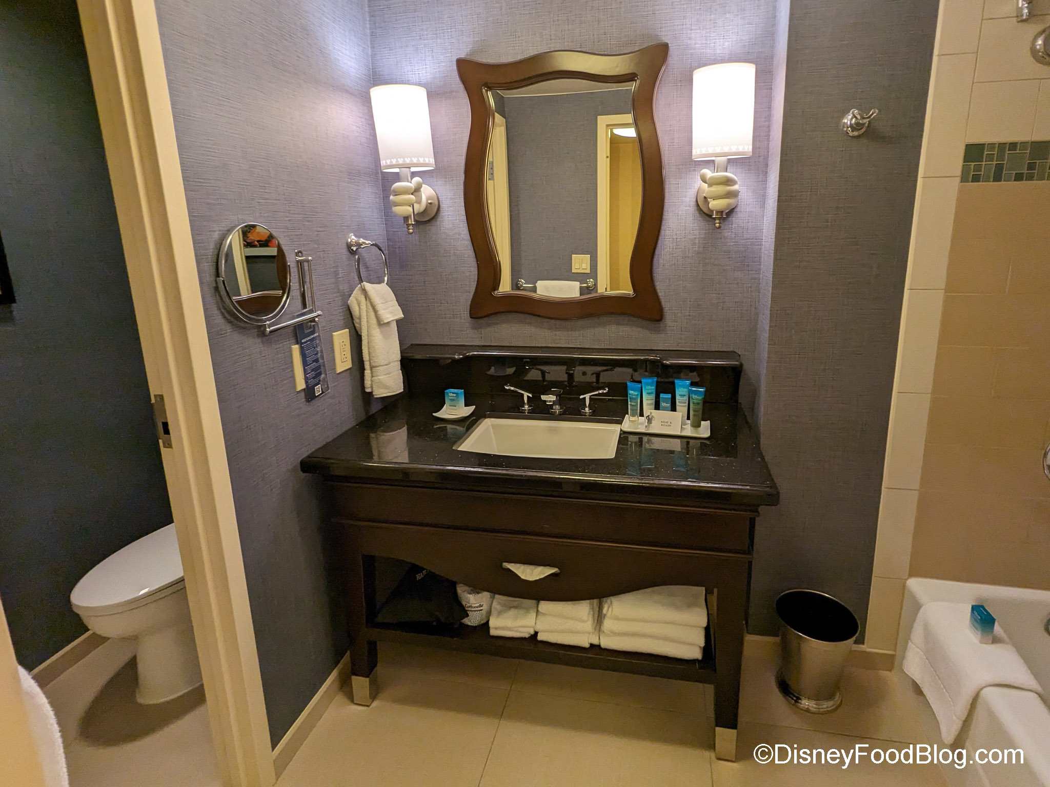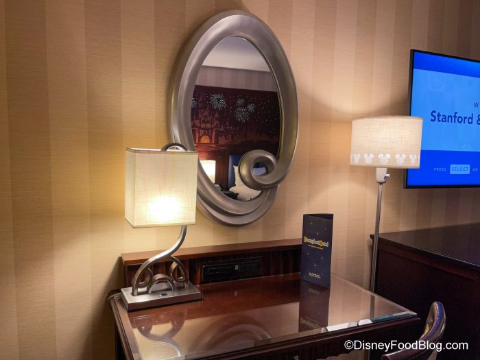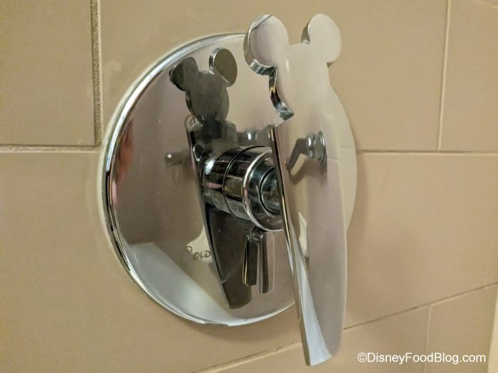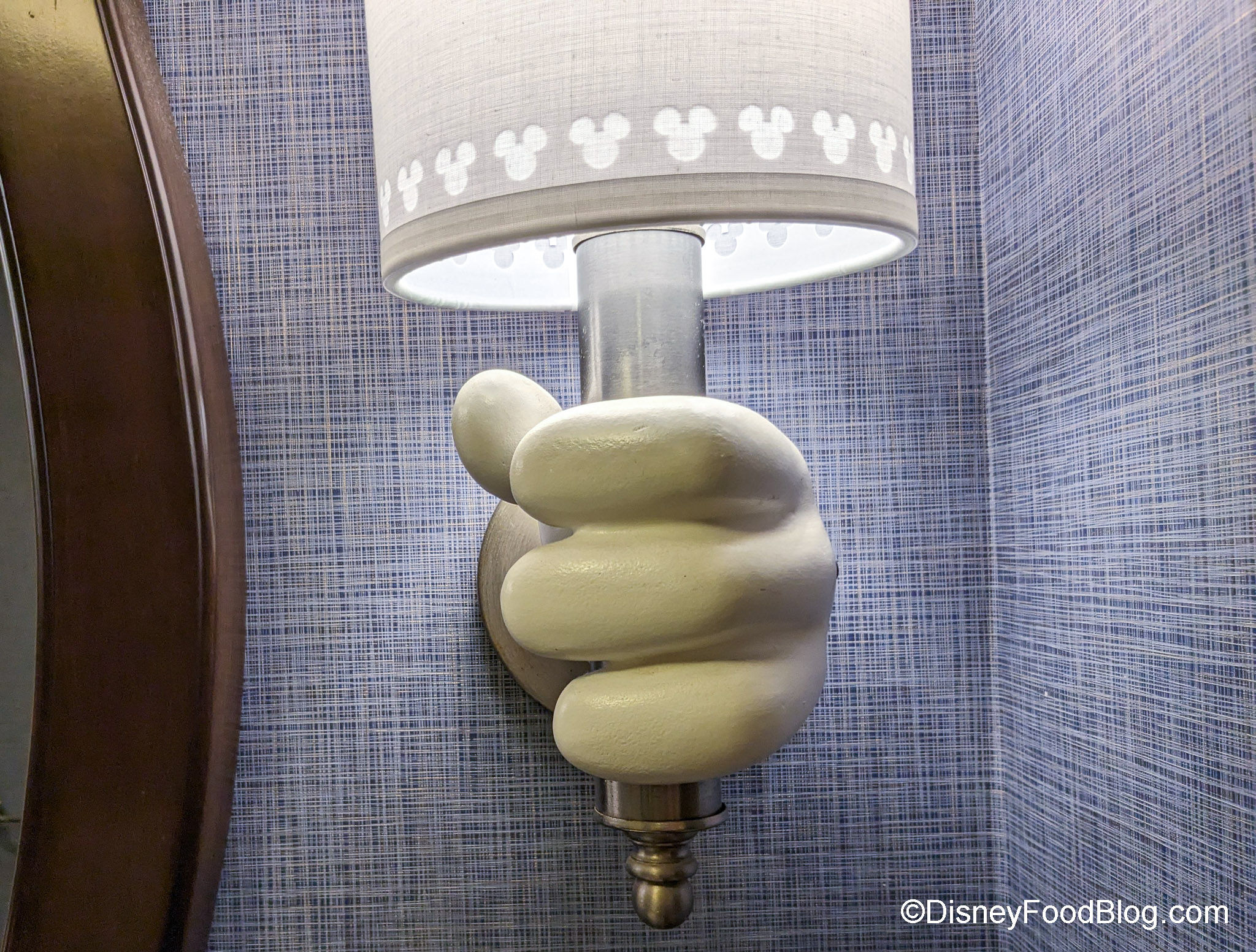 You’ll find a lamp on both sides of the mirror and MICKEY is holding it! Seriously, it’s ALL about the details.