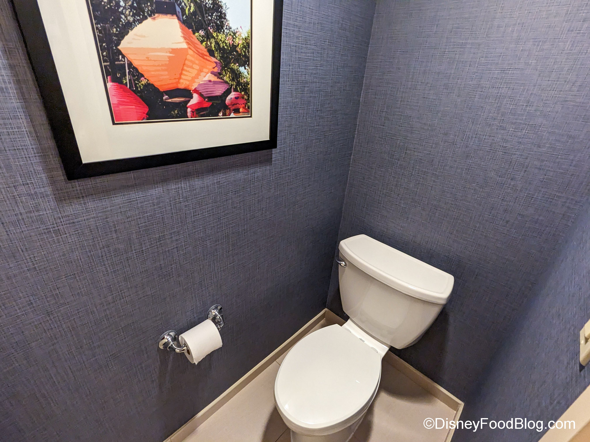On one side of the table is the toilet. It’s in its own little separate room with a door.