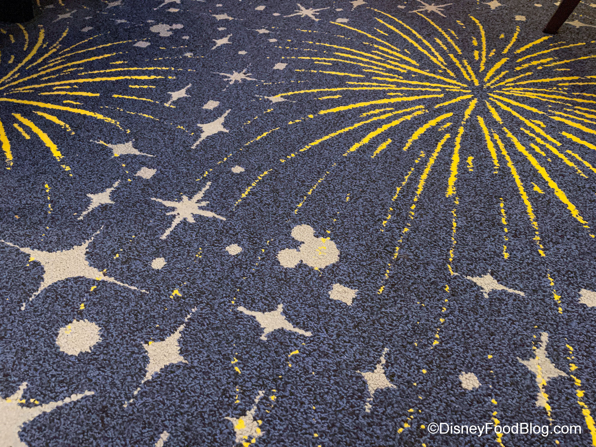 Did we mention the carpet is done up with a fireworks theme, too? PLUS there are hidden Mickeys on it!