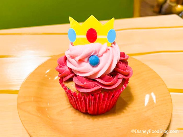 Of course, we couldn’t leave without trying a dessert. We got the Princess Peach Cupcake for $9.99. It’s made with raspberry-filled funfetti cupcake, buttercream frosting, and a Princess Peach chocolate crown. It is ADORABLE.