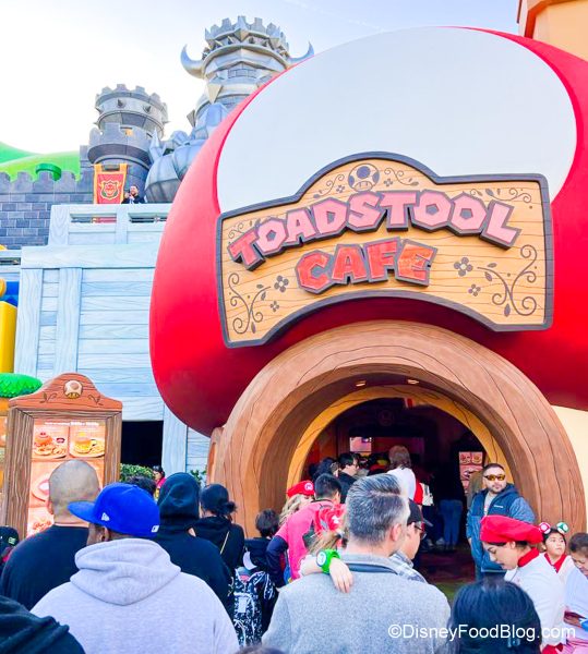 Super Nintendo World has officially opened in Universal Studios Hollywood! We have been experiencing it ALL and sharing the latest details with you about the merchandise, the land’s ride, and all of the other fun things you can do here. But what about the FOOD?! Well, that’s where the adorable Toadstool Cafe comes in!