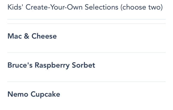 …and “create-your-own” choices for kids’ entrees, sides, and dessert.