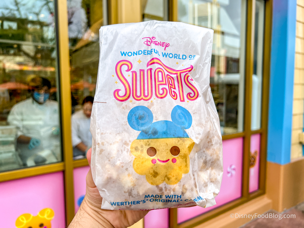 The reimagined World of Sweets has ALSO started selling freshly-made Werther’s Original Caramel popcorn. (Which is a BIG DEAL for the DFB squad — because that’s one of the KEY REASONS why we LOVE Karamell Kuche over in EPCOT so stinkin’ much!)
