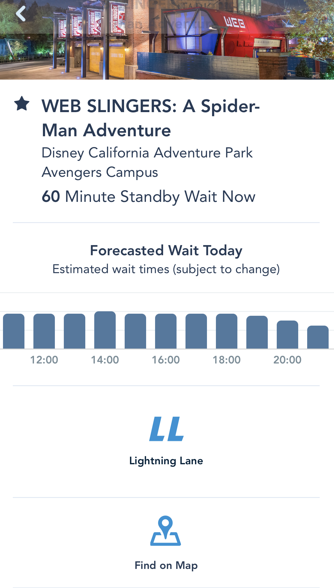 How will you know on any given day if the virtual queue is being used? Check the Disneyland app! If you look at the ride there, you’ll see whether a virtual queue is in use. For example, this is what it looks like for Mickey & Minnie’s Runaway Railway today (virtual queue in use)…