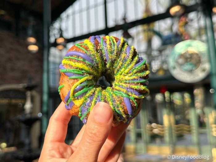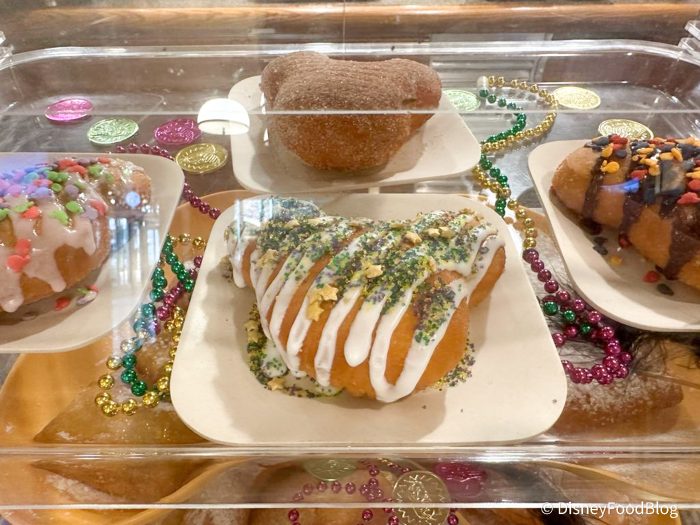 First up, we just had to grab a King Cake — a true Mardi Gras staple — at Disney’s Port Orleans Resort — French Quarter.