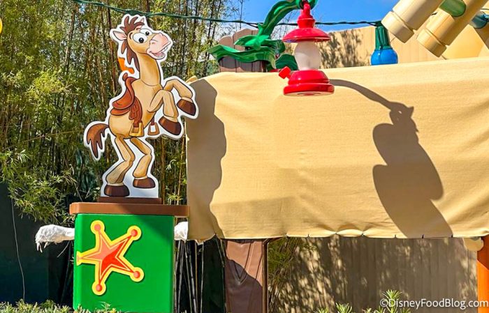 Your dining experience will take place in a new play area Andy created for his toys. Diners will sit at western playsets while “rodeo festivities” happen all around.