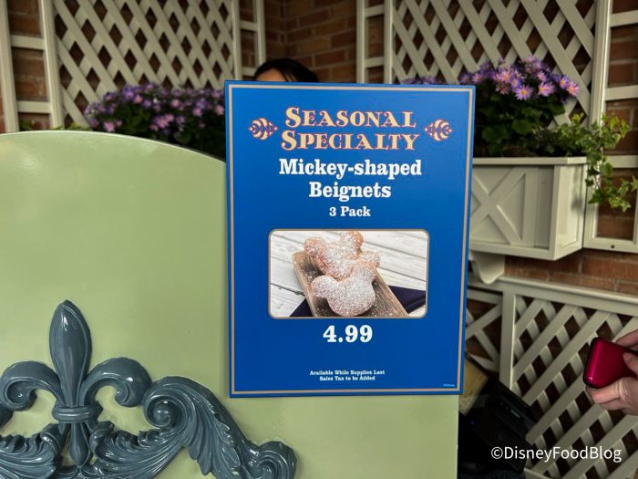 You can grab your fix of Mickey beignets from Royal Street Veranda in Disneyland for $4.99 for a pack of three beignets. However, there’s a catch….