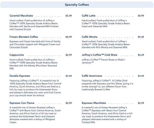 There are several coffee options as well, like a Caramel Macchiato, Caffé Mocha, or Cappuccino.