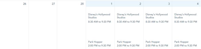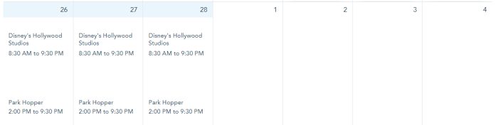 Hours for Hollywood Studios are from 8:30AM-9:30PM on February 26th-28th…