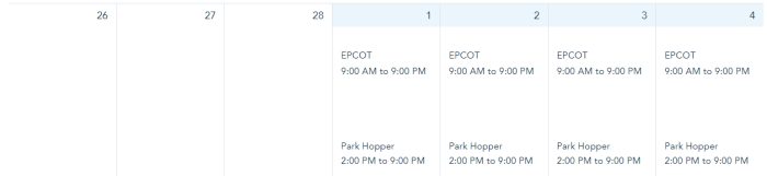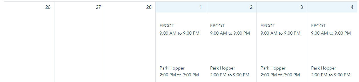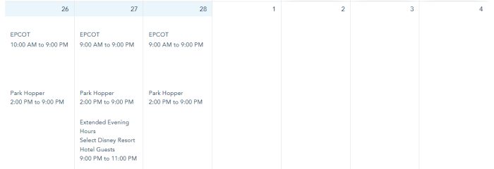 The park hours for EPCOT are from 10AM-9PM on February 26th, from 9AM-9PM on February 27th and 28th…