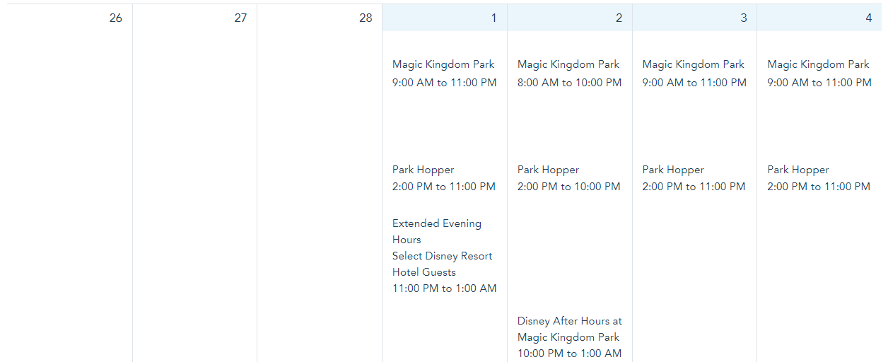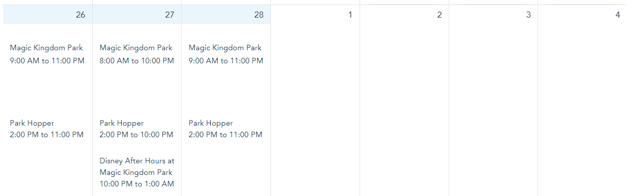 Magic Kingdom is open from 9-11PM on February 26th-28th…