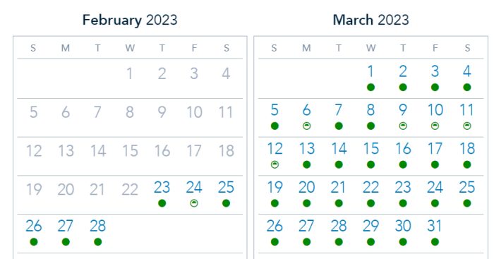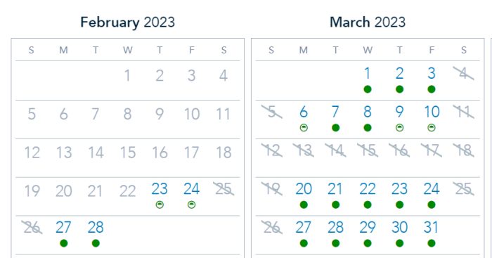 Disney World uses a different calendar to track park pass availability for Annual Passholders. For the IncrediPass, park passes are available for all four parks on February 26th-March 4th.