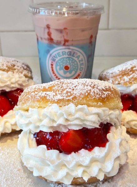 According to the Instagram post they shared, the first is a traditional glazed donut that’s “halved and filled with a heaping portion of fresh Florida strawberries, piped with housemade whip cream, and dusted with powdered sugar.”