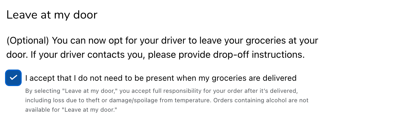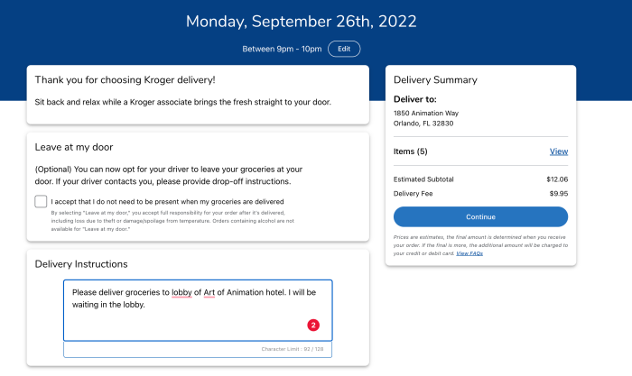 You can select which grocery story you’d like to use and then add each of the items you wish to purchase. You can also choose the date and time you’d like to receive your groceries! Delivery fees have been $7.99 in the past, and we were able to select from several two-hour delivery windows.