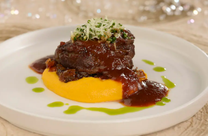 - Braised Beef with carrot and coriander purée, shallot jam, and horseradish gremolata (New)