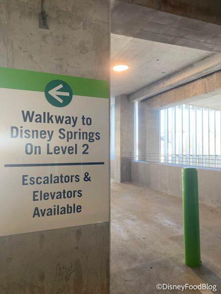 At each of the parking garages, you can exit the garage to walk to Disney Springs through the security checkpoints, which are located on the far right of Level 2. However, remember that you may be closer to the exit if you park near the escalators on Levels 3 or 4 rather than parking far away from the security checkpoint on Level 2.